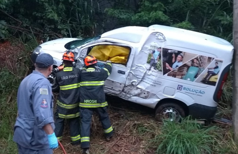 Motorista fica preso nas ferragens após batida em barranco na SP-332
